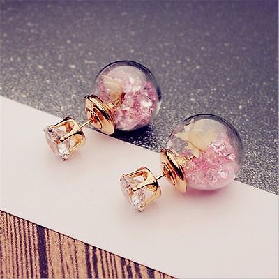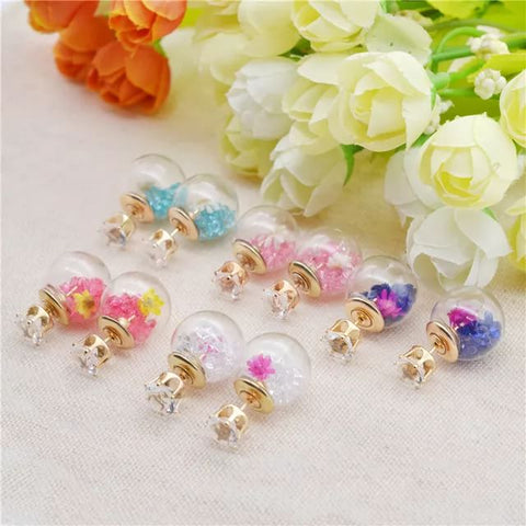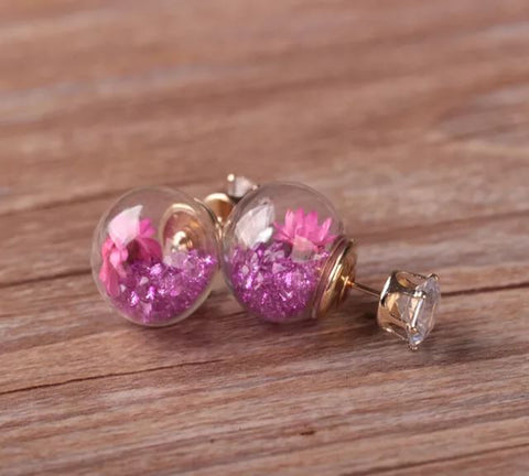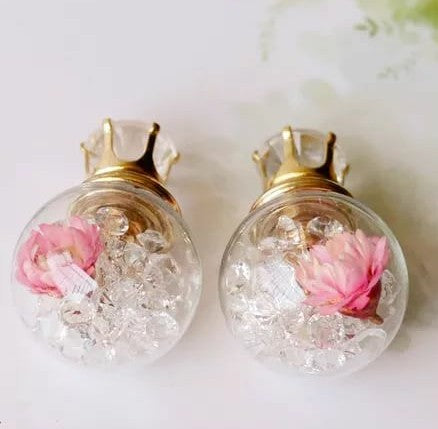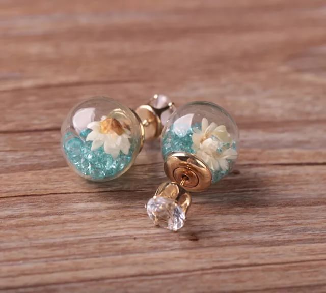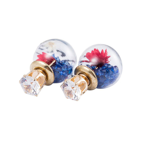 Elegantly Designed Gold Alloy "BeYoutiful World" Crystal Flower Glass Stud Earrings