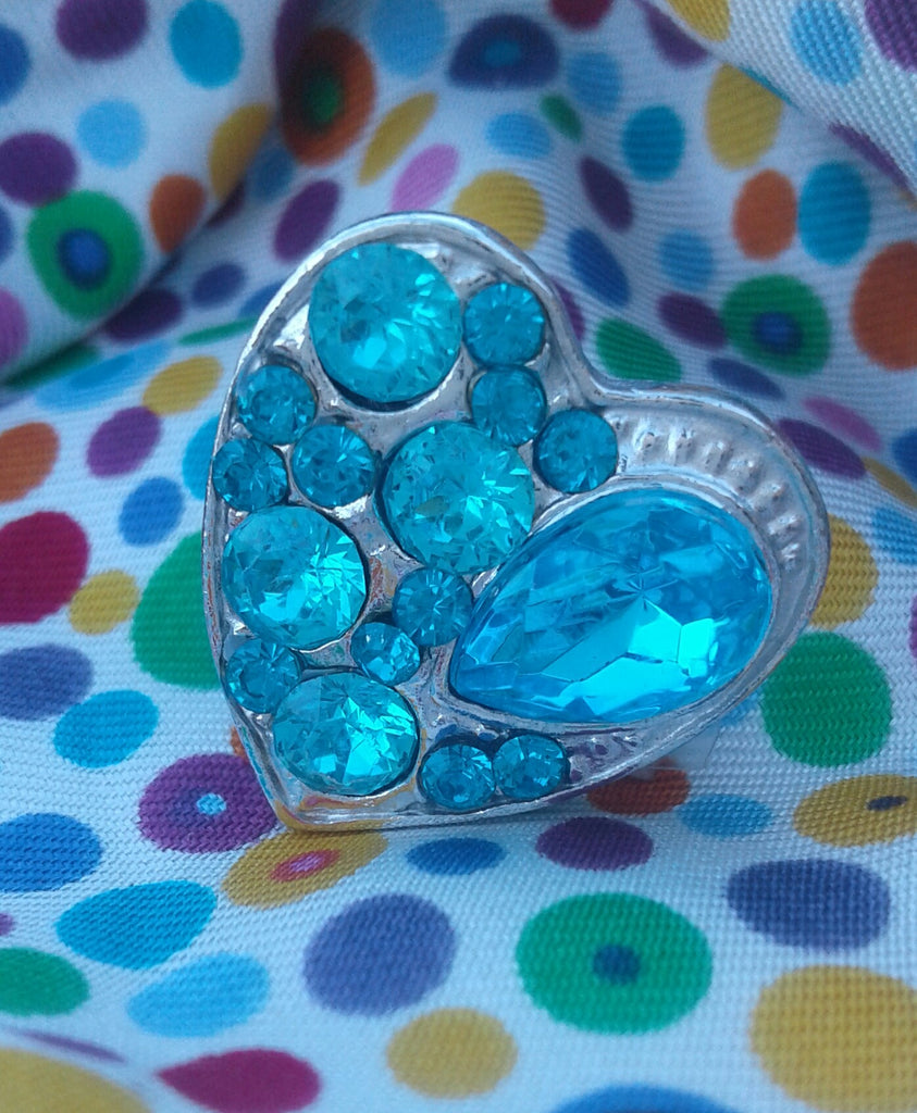 3-D Silver Alloy Aqua & Teal Crystal Heart Snap Button Charm