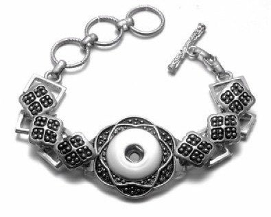Stylish & Uniquely Designed Black & Silver Alloy Adjustable Toggle Clasp Snap Charm Bangle Bracelet