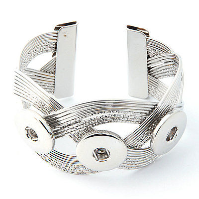 Silver Chunky Unique Chic "BeYoutiful Cuff Chunky Bangle" Tri Snap Button Charm Bracelet