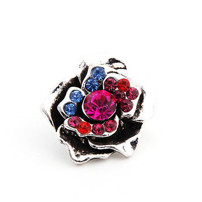 Fashionable & Unique BeYoutiful Antique Silver Alloy Multi-Color Crystal Embellished Rose Snap Charm Button