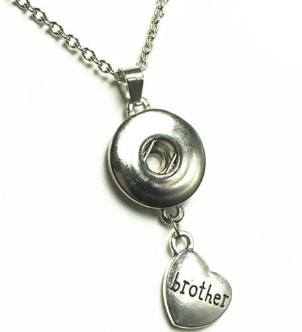 Personalized Silver Alloy Brother Keepsake Heart Snap Charm Button Necklace