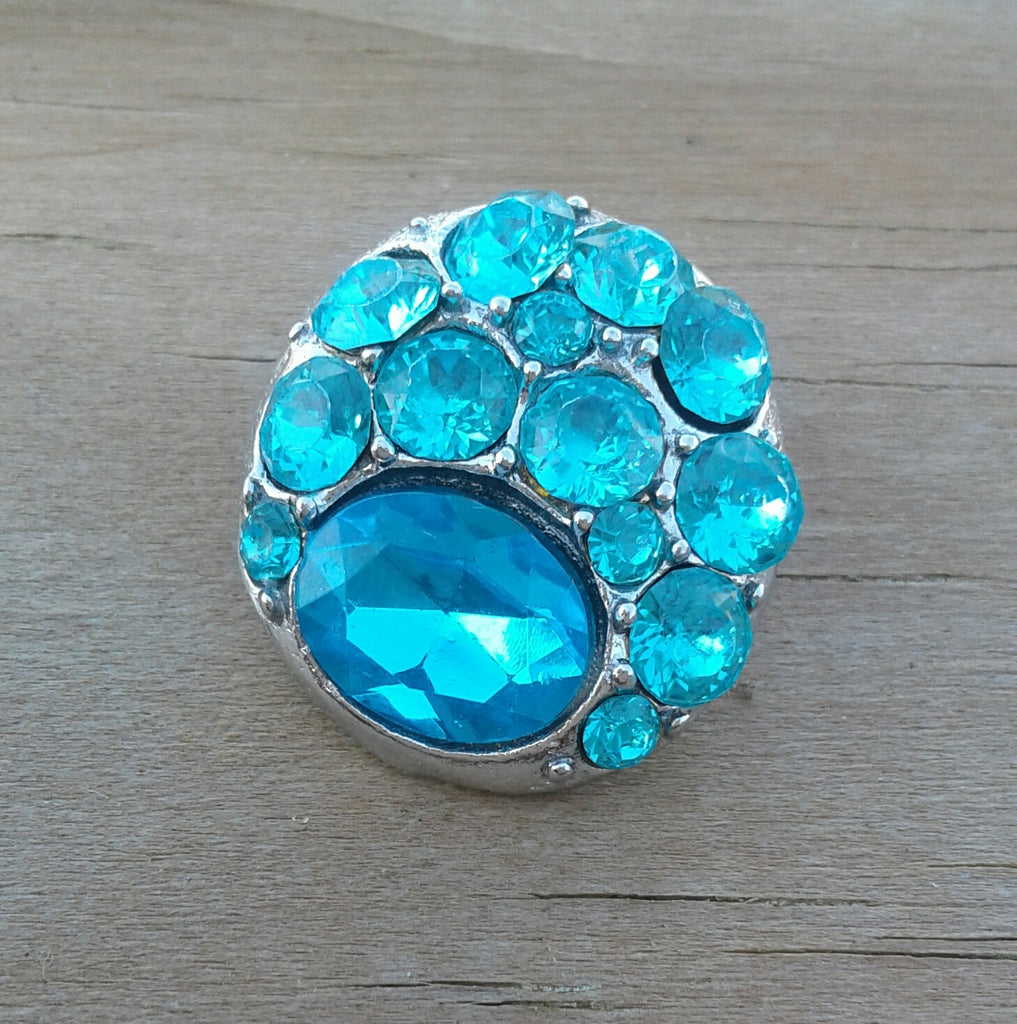Glitzy Chunky Chic Aqua Crystal Faceted Silver Alloy Snap Charm Button