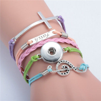 8.5" Lightweight Handcrafted BeYoutiful Faith Colorful Leather Snap Charm Button Bracelet