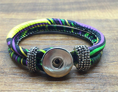Fashionable & Vibrant Multi-Color Handcrafted Loop & Hook Leather Print Snap Charm Button Bracelet