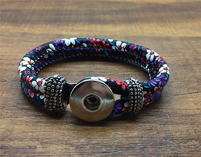 Handmade & Unique Bold Fashionable Floral Print Leather Loop & Hook Snap Charm Button Bracelet