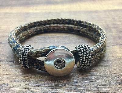 Stylish and Fashionable Handmade Silver Alloy Loop & Hook Animal Print Leather Snap Charm Button Bracelet