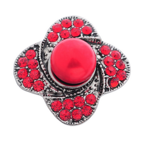 Bold & Vibrant Red Pearl Crystal Embellished Alloy Flower Snap Charm Button