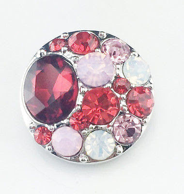 Elegant & Charming Multifaceted Red & Rose Pink Crystal Embellished Alloy Snap Charm Button