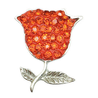 BeYoutiful Ornate Vibrant Red Crystal Embellished Silver Rose Alloy Snap Charm Button