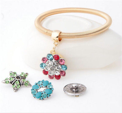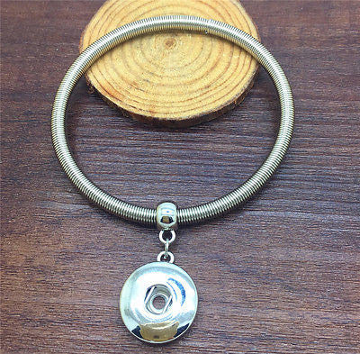 Chic and Stylish Silver Alloy Lightweight Adjustable Spring Snap Charm Button Bangle Bracelet