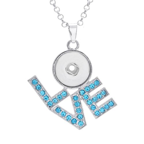 Stunning & Fashionable Aqua Crystal LOVE Snap Charm Button Necklace