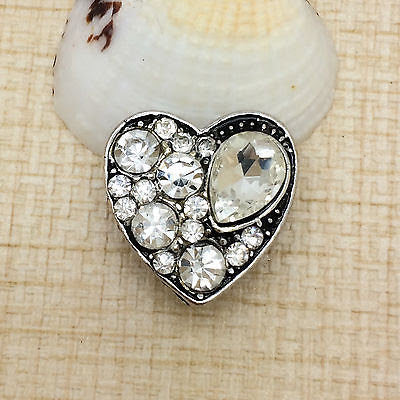 Stylish & Luxe Designed Crystal Embellished Antique Silver Alloy Heart Snap Charm Button