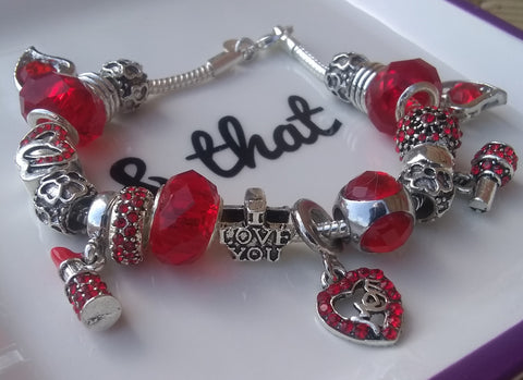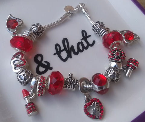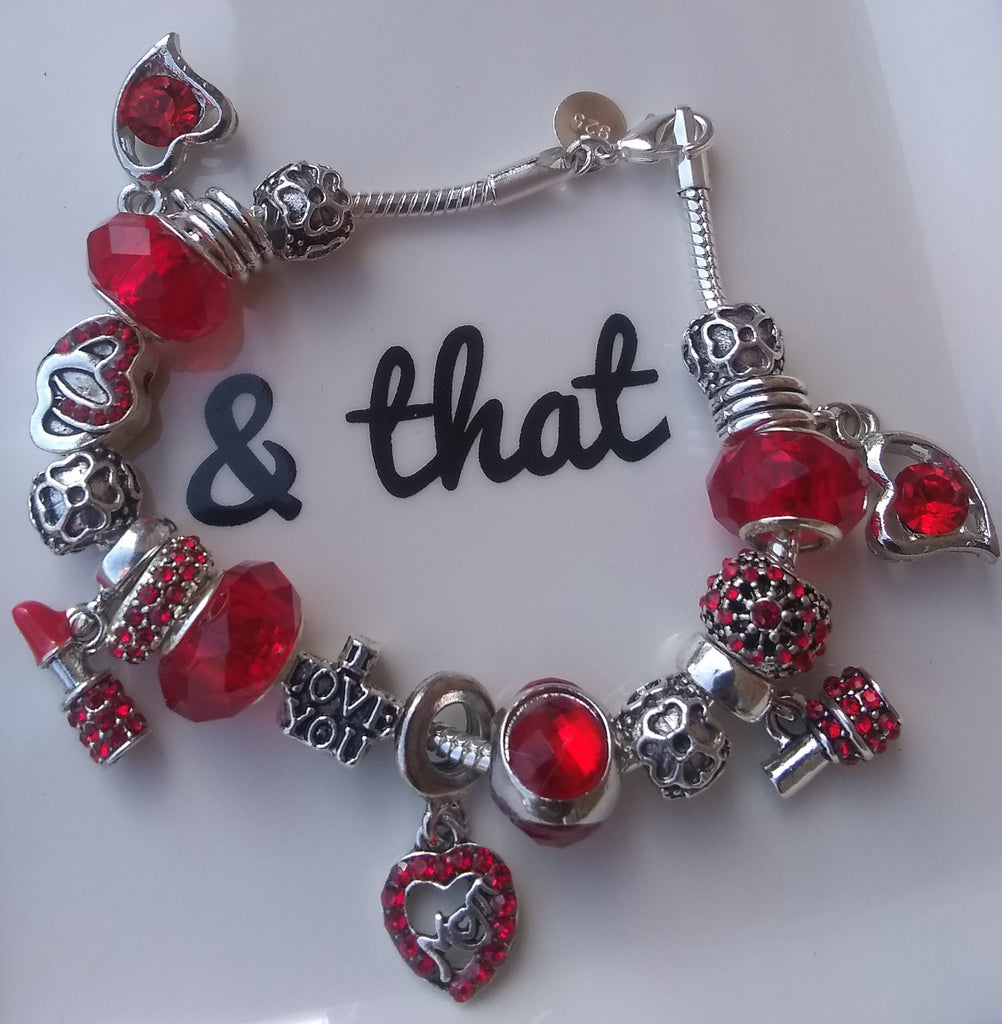Sassy & Sweet 8" 925 Sterling Silver "BeYoutiful Fashionista" Red Crystal Heart Charm Bracelet Featuring Our 925 Sterling Silver Core BeYoutiful Red Murano Beads & Many Other BeYoutiful Charms