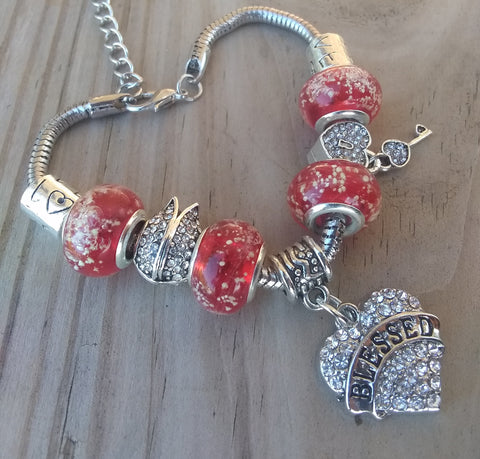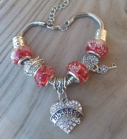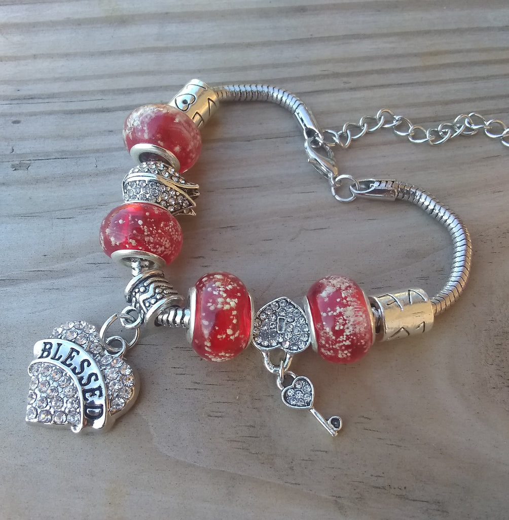 7.5" Elegant & Inspiring Custom Created "BeYoutiful Wonderland" Crystal Alloy Charm Bracelet Featuring our "BeYoutiful Blessed" Crystal Heart Charm Bead & Many Other BeYoutiful Charm Beads