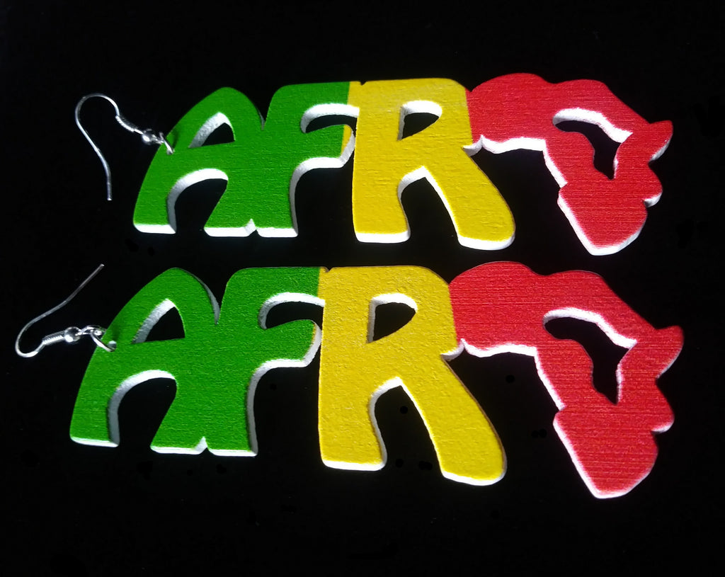 Wood Afro Africa Map Earrings