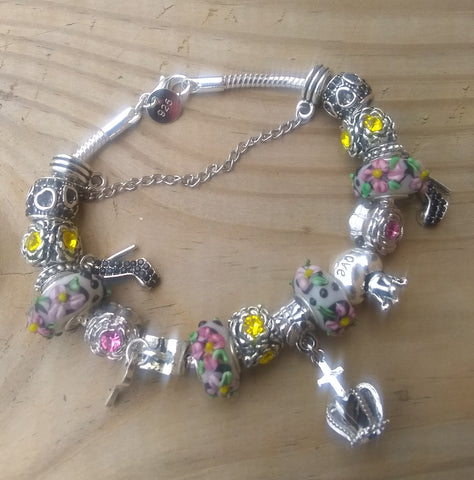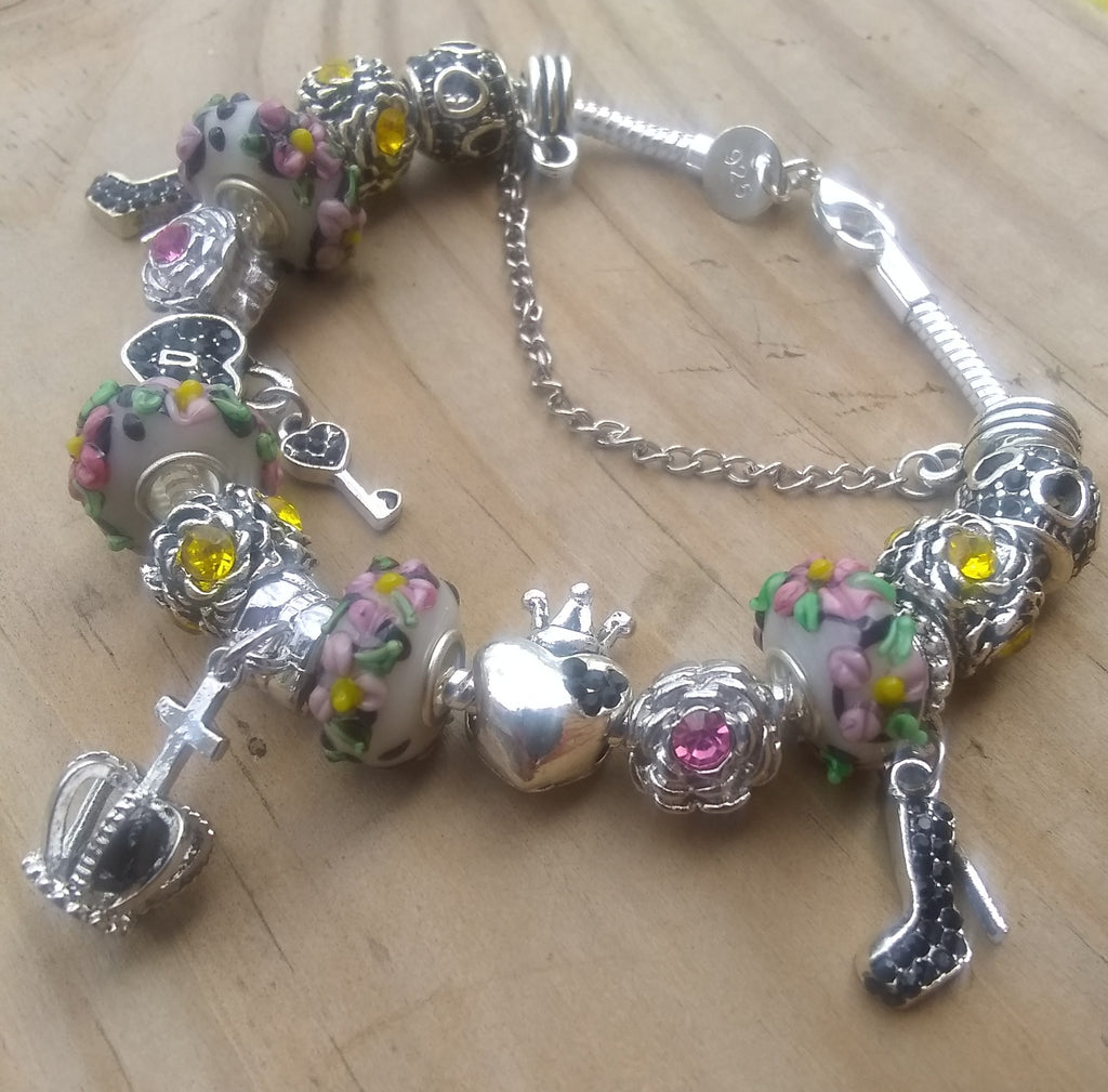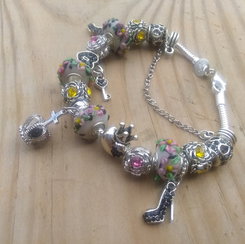 Stylish & Uniquely Chic Custom 8" 925 Sterling Silver "BeYoutiful Bella" Crystal Charm Bracelet Featuring Our "BeYoutiful Royal Crown" Crystal Cross Charm Bead & Many Other BeYoutiful Charms