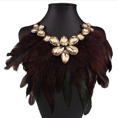 Uniquely Devine Handcrafted Chocolate Cocoa Layered Feather "BeYoutiful Goddess" Chunky Gold Crystal Felt Ribbon Statement Necklace