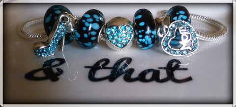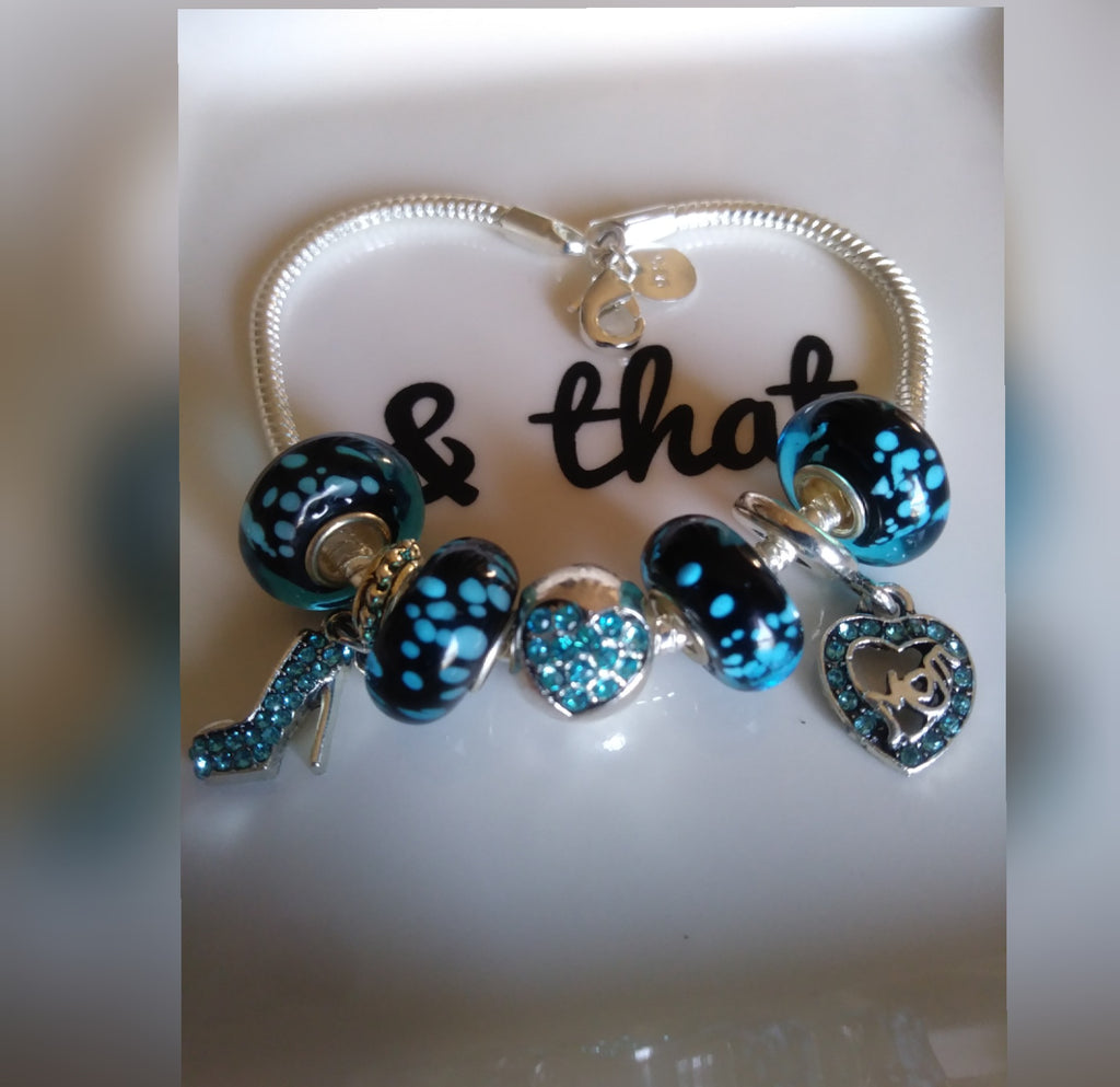 "BeYoutiful Love" Mother's Day Inspired One-of-a-Kind Sterling Silver Aqua Crystal Charm Bracelet Featuring: