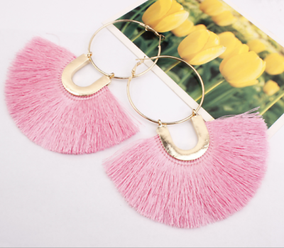 4" Long Intricately Designed Soft Rose Pink & Gold Alloy "BeYoutiful Harmony" Drop Tassel Hoop Statement Earrings