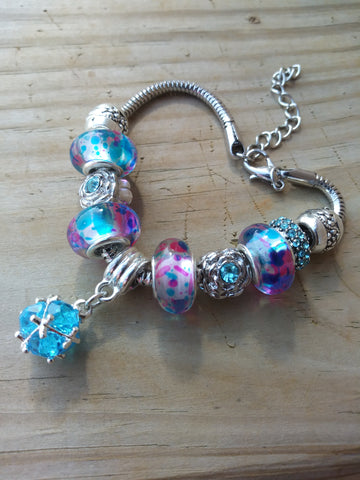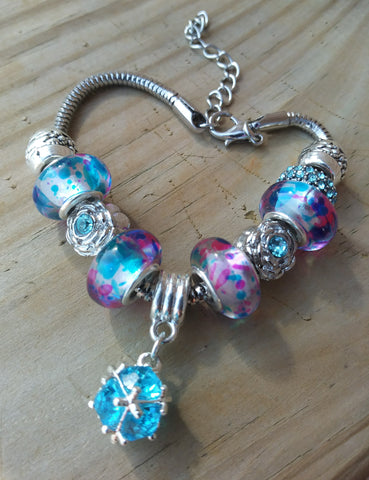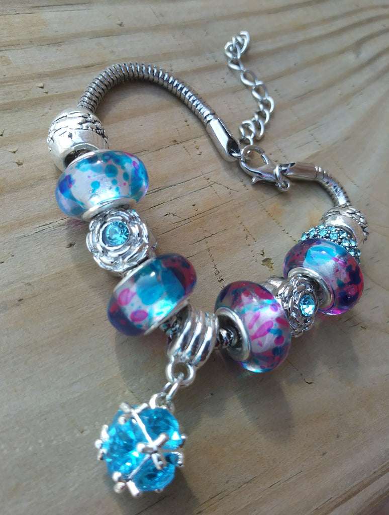 7.5" Enchanting Chic Aqua Crystal "BeYoutiful Rain" Alloy Charm Bracelet
