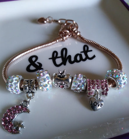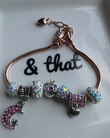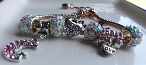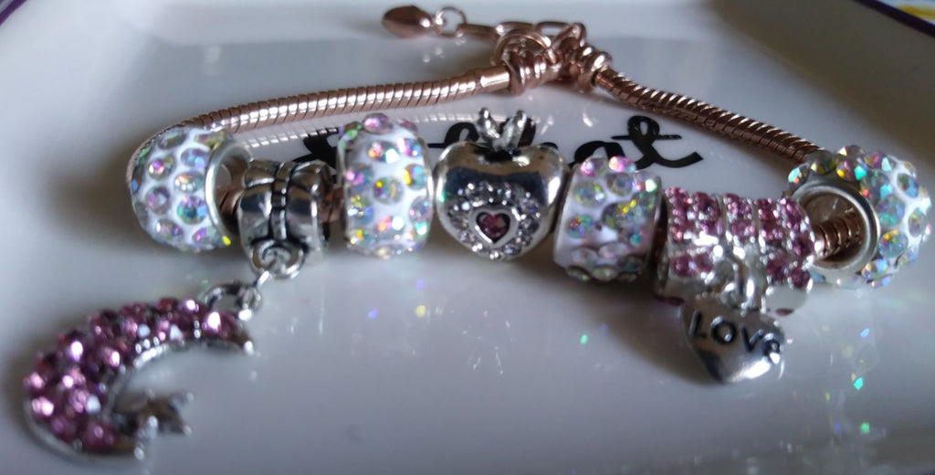 One-of-a-kind Mother's Day Inspired Rose Pink Crystal "BeYoutiful SweetHeart" Rose Gold Screw Bangle Charm Bracelet Featuring: