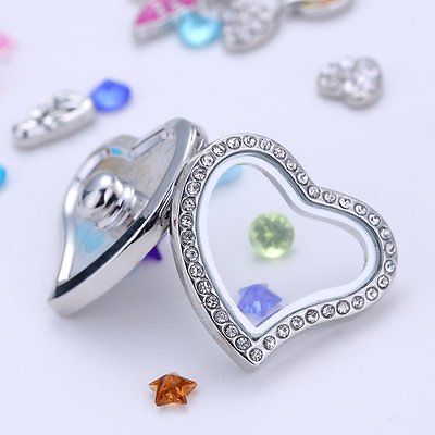 Silver Alloy and Glass Beyoutiful Heart Crystal Memory Locket Snap Button Charm