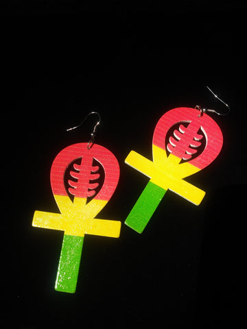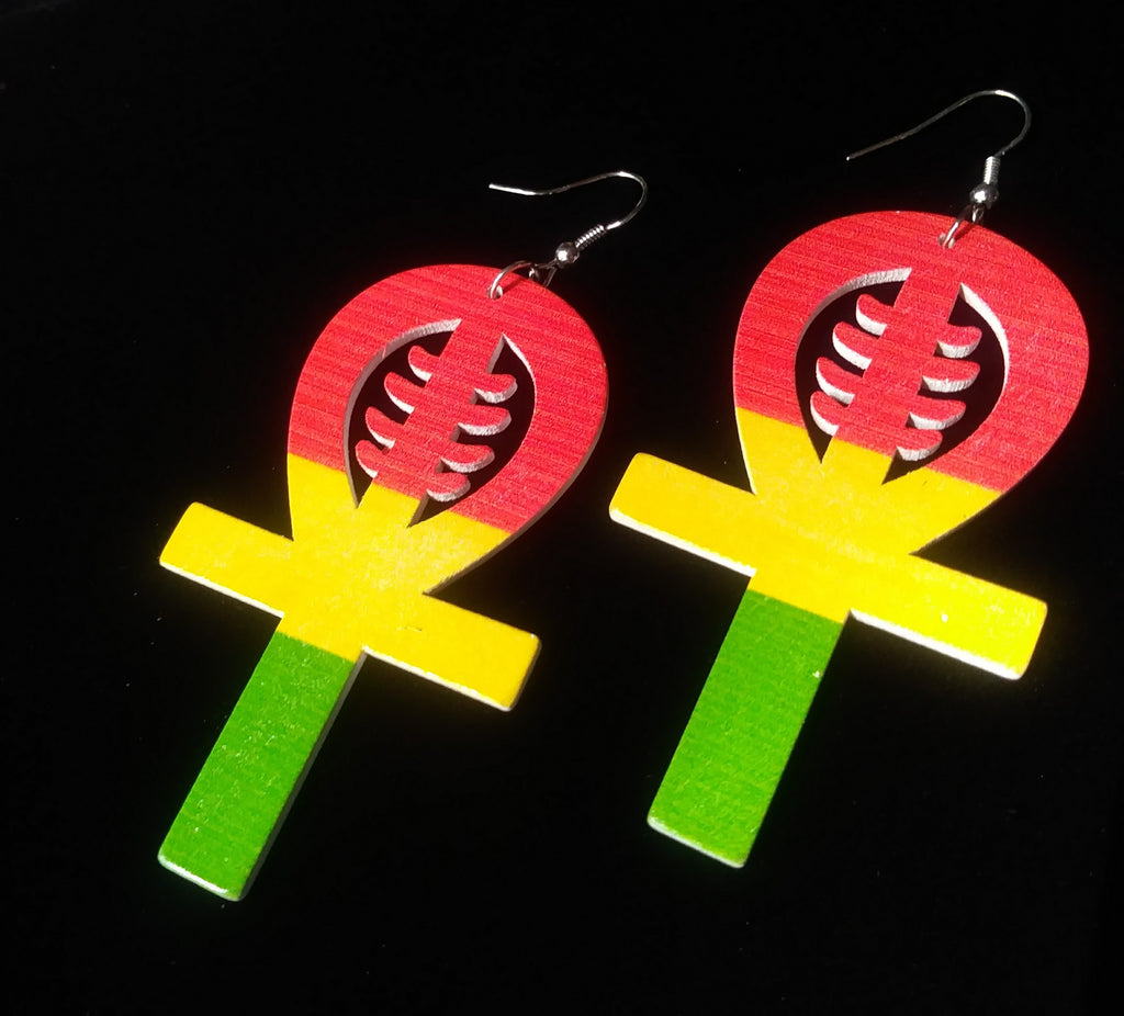 Wood Ankh Cross Earrings